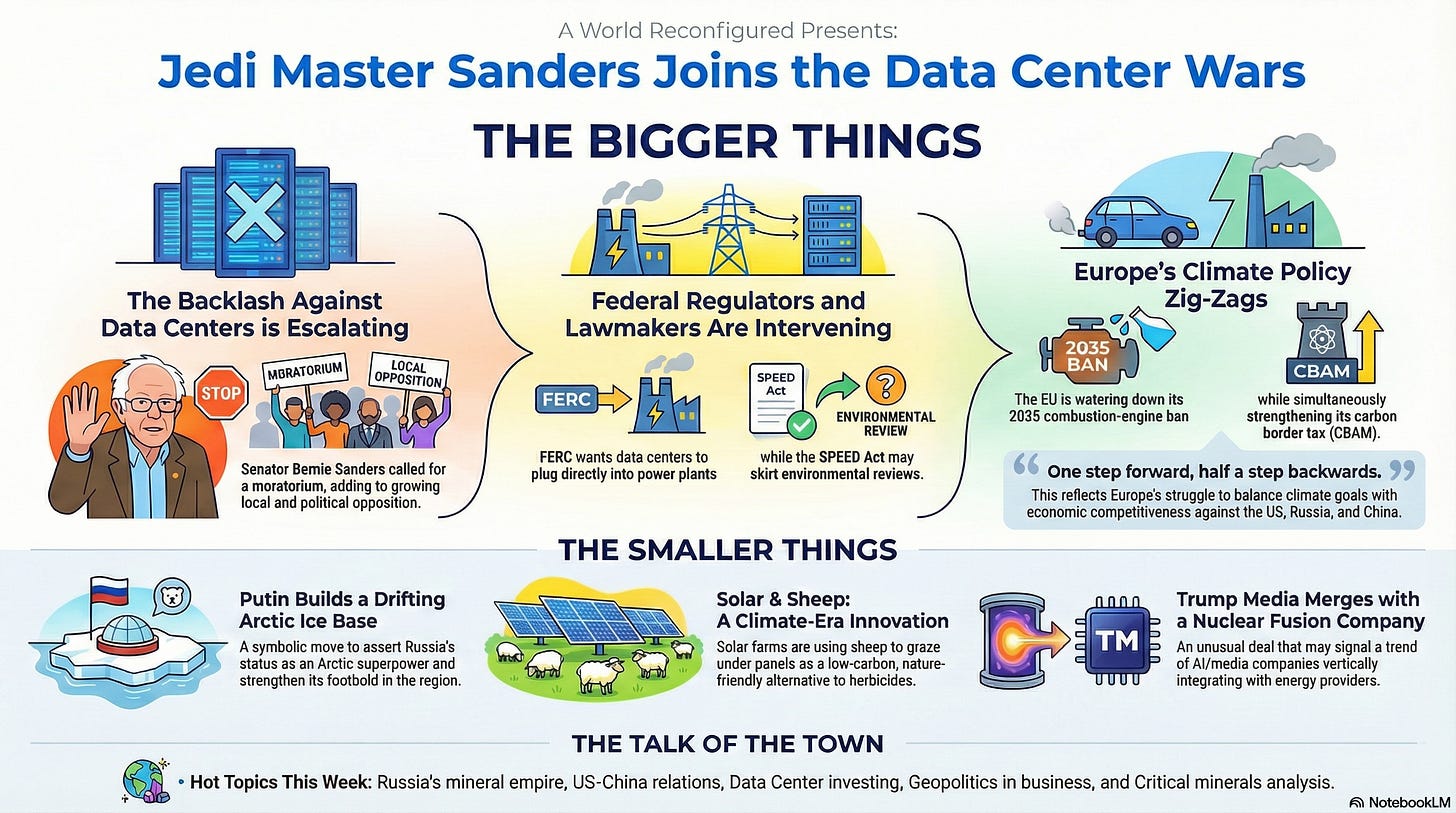 What Happened? Sheesh, the data center wars are not slowing down. Senator Bernie Sanders joined calls for a national moratorium on new data centers, setting off a storm of statements and quote-tweets on X. David Sacks was very vocal for once.