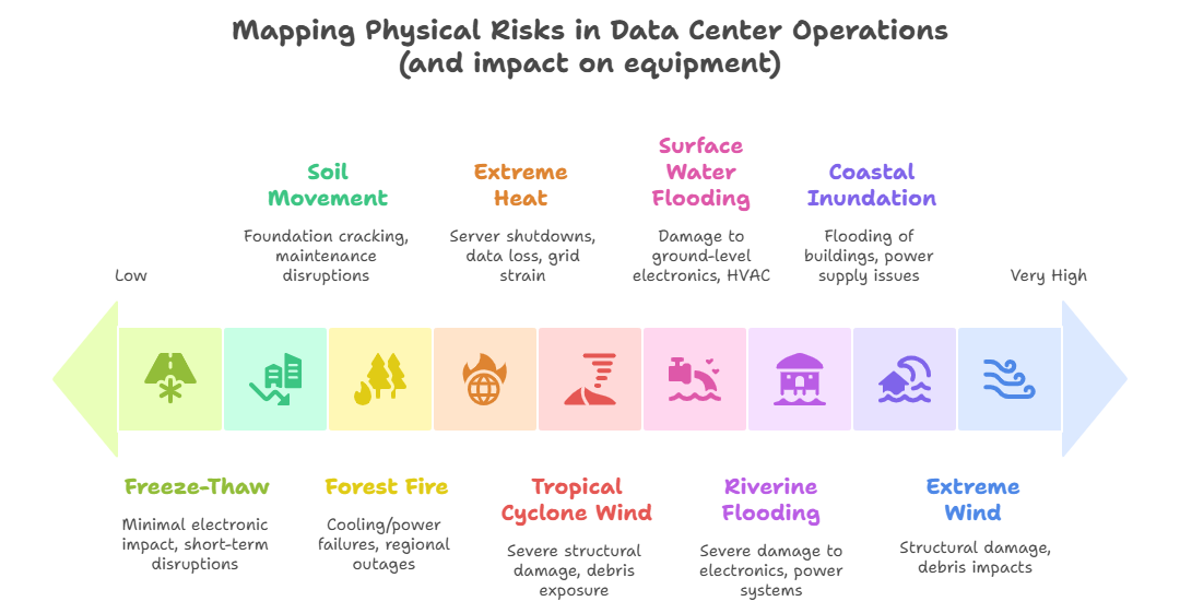 Each hazard creates a different kind of risk for data centers, impacting equipment and operations differently. But all are problematic at some level.